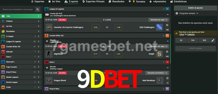 O 9Dbet oferece uma grande seleção de opções de apostas em e-sports com probabilidades competitivas